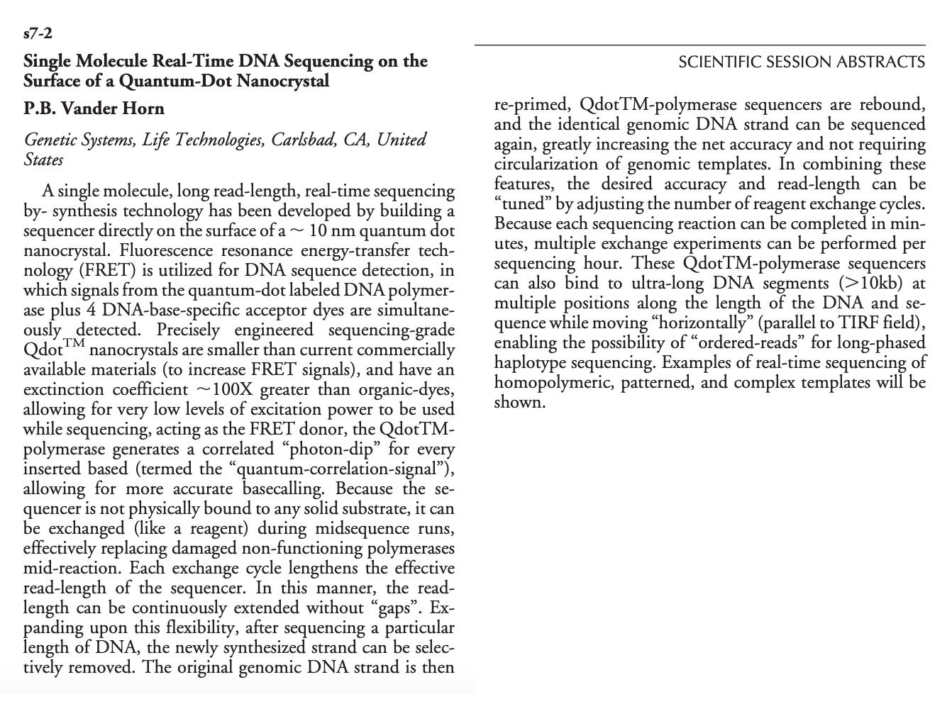 They are using qdots for the oligonucleotide mixtures used in genetic sequencing. Now we know where the data is coming from, cyphered into genetic information. What’s more, they describe the ion channel pump system in great detail and its signal transduction through qdots…there we go!
