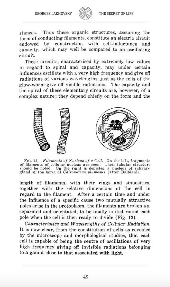 Marsh and Beams discovered the electrical properties of chromosomes (1946) … “The electric field caused the mitotic spindle to align parallel to the field lines, altering the plane of chromosome segregation. This suggested that the spindle’s microtubules, being polar, respond to electric fields via electrophoretic forces or dielectric properties”.