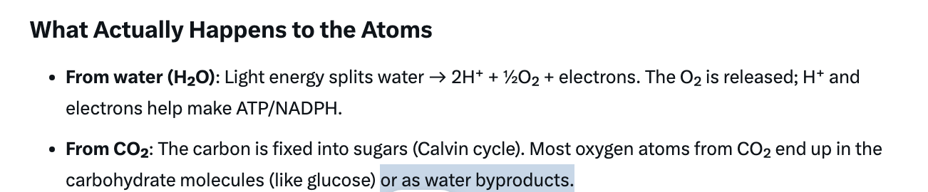 Thusly the oxygen from the CO₂ allegedly ends up in “water byproducts”... And on top of that, the water needs to be split through a very complex process, to extract such oxygen… this logical / efficiency error has not been recognised anywhere, so it seems! Why don’t we simply take the oxygen from the “water byproducts”? The answer is that we already do that and that this is the way it works naturally. No water is being split. Occam’s razor tells us that the plant takes what it needs for starch and frees the oxygen for our breathing (occam’s razor: the oxygen is right there in the CO₂).