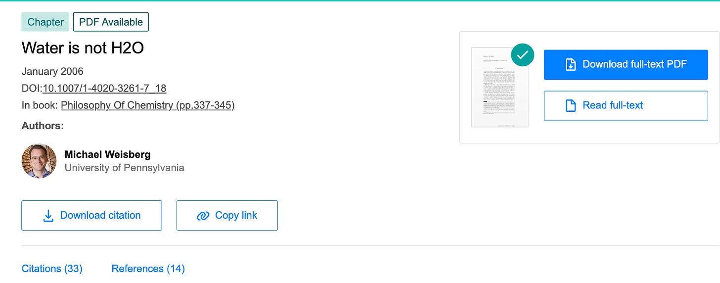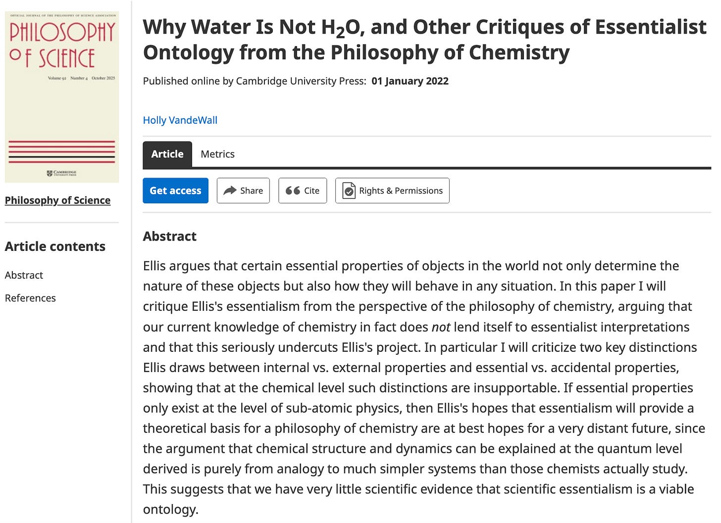 «100 reasons why water is not h2o.» [more evidence: 44]4